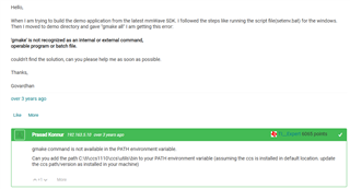 我尝试在命令提示符下运行该命令、但显示该命令gmake无法识别。 但是、我已经安装了该gmake文件。 您可以在 CCS 文件夹中看到它、我在下面添加了一个片段以供参考。