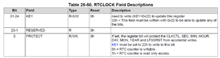根据 TRM (SLAU847E) 第 25 节、该寄存器用于保护 CLKCTL、SEC、MIN、HOUR、DAY、 MON、YEAR 和 LFSSRST(来自其他写入)。