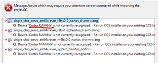 但是、当我将工程 single_chip_servo_am64x-evm_system_freertos_nortos 导入 CCS 时、会出现以下消息: