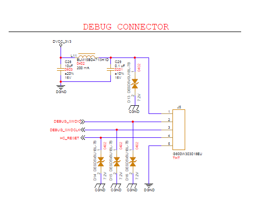 我有一个定制电路板、根据为调试/程序刷写拍摄的映像带有引脚。