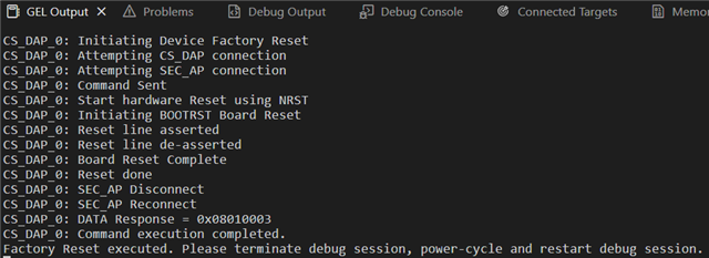 步骤 4 — 现在终止调试会话,下电上电并重新启动调试会话
