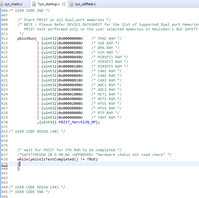我正在进行 BIST 工作,我在 Halcogen 中启用它,并选择要测试的模块,