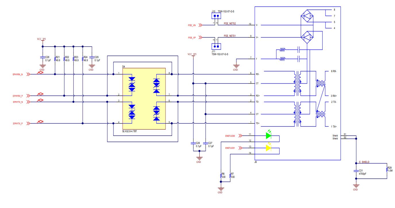 请注意 Charles 的好建议、也许您 可以添加3V3 TVS 二极管来代替 TX/RX 差分对上的4x-22pF。 OnSemi 使用焊片制作1ns 无功3V3 TVS、略大于0402电容器。 我非常喜欢 这些18KV ESD 器件!