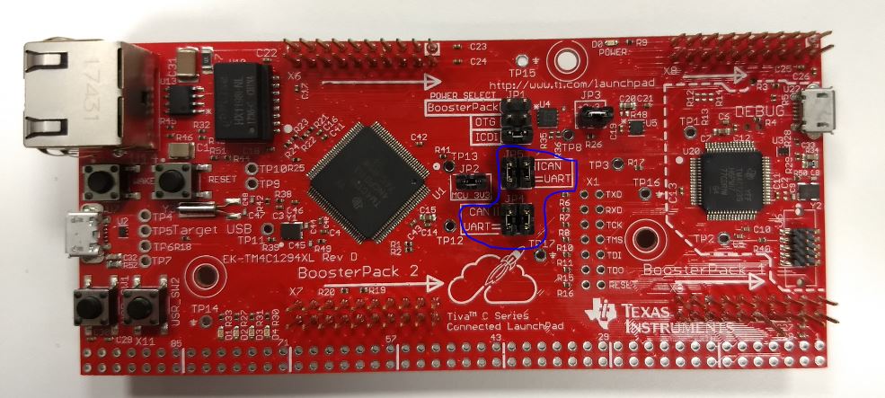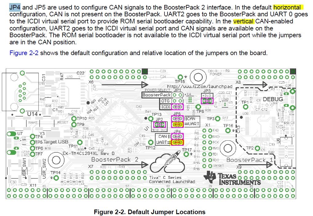 如果要将 UART0连接到 Booster Pack、则需要将 JP4和 JP5更改为垂直位置。 有关详细信息、请参阅以下摘录中的 LaunchPad 用户指南。