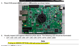 《TMDS243EVM 用户指南》中还有一条注释、指出此特定 LD2在电路板的 AM243x 型号上不点亮。