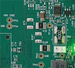 我们选择的默认选项是通过 U25降压稳压器使用0.85V 电源为内核和 SRAM 电源供电。 U25还将生成 VCC_CORE_PG 电源正常信号、该信号将导通 LD7以指示 VCC_CORE 电源。