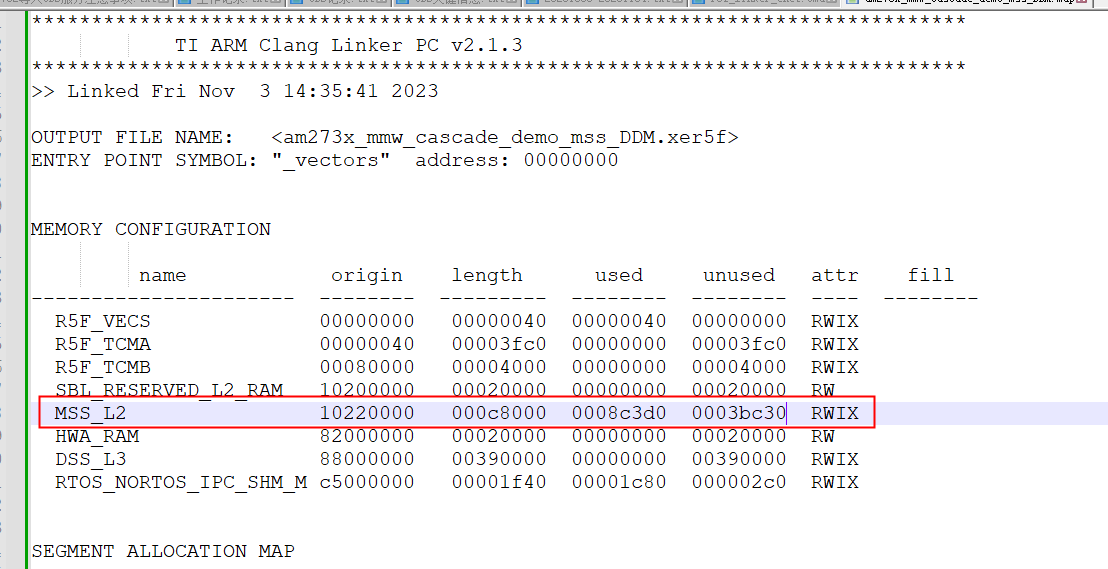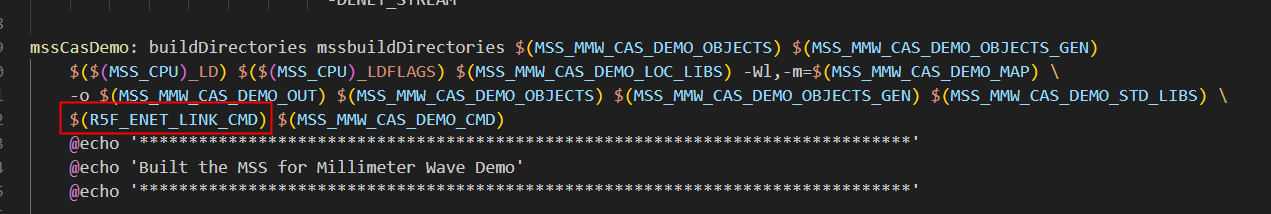 并且客户修改了 mmw_mss 中调用的 cmd 文件的路径。 mak 文件、从调用 r5f_linker.cmd 更改为调用 r5f_linker.cmd: