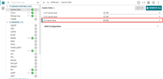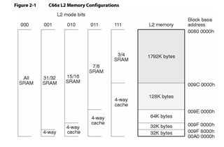 根据您的 MAP 文件、DSS_L3约为1.4MB、而 DSS_L2约为320KB。 您可以通过调整 L2高速缓存大小来试验程序的性能。 根据 AM273x TRM、在用于 L2缓存的384KB DSS_L2中、您最多可以有256KB 的内存。 当然、如果您使用 DSS_L2进行缓存、则不能将 DSS_L2用于 SRAM。 您将需要找到一个折衷点来最大化您的程序性能。 有关 C66x 高速缓存的详细信息、您可以参阅以下文档: C66x DSP 高速缓存用户指南(TI.com) 2.2配置 L2高速缓存