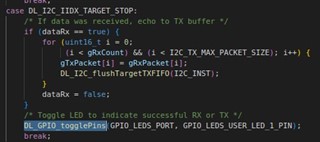 DL_I2C_IIDX_TARGET_STOP 状态始终在代码中触发、电路板上的 LED 会闪烁。
