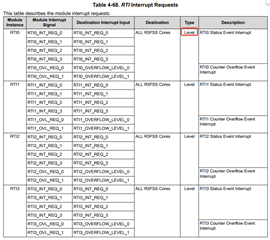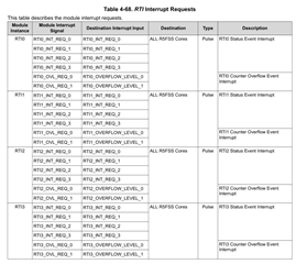 表4-68显示了所有 AM2634 RTI 中断请求都是脉冲类型。