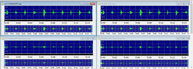 我进行了验证。我打开了 AGC 函数并分别以100个卷和50个卷记录,然后关闭了 AGC 函数并分别以100个卷和50个卷记录。