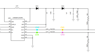 MEMS 扬声器需要驱动信号的直流偏移。 为此,我们使用 LM48580的 Vbst,通过10kOhm 电阻器耦合到 out+路径,并通过2.2µF Ω 直流块电容器从输出(out+)分离。