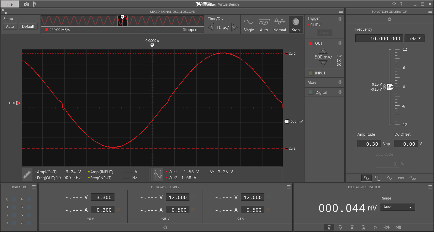 是的,放大器由+/-12V电源供电。 即使在低振幅下也会发生失真。 而且在低频时失真不明显。 而当应用较高频率的输入信号时,它似乎更有意义。