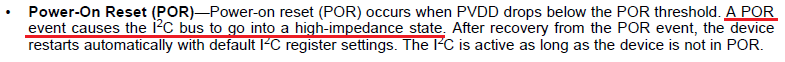 它显示" POR事件导致I2C总线进入高阻抗状态", 我认为输出也是Hi-Z。