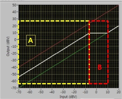 B是输出大于增益限制器电平。 此时会发出噪音。