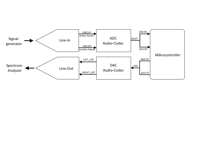 我想将AIC3104上的ADC和DAC与TM4C123GH6PM Launchpad一起使用。 所以我必须用两个SPI接口模拟I2S。 在下图中,您可以看到连接。