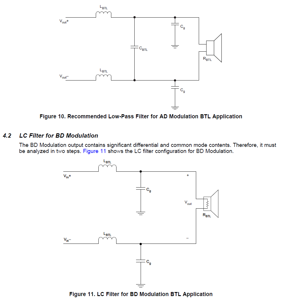 TAS5421-Q1采用BD调制,因此LC过滤器必须采用BD调制方案,如电子邮件中的图11所示。
