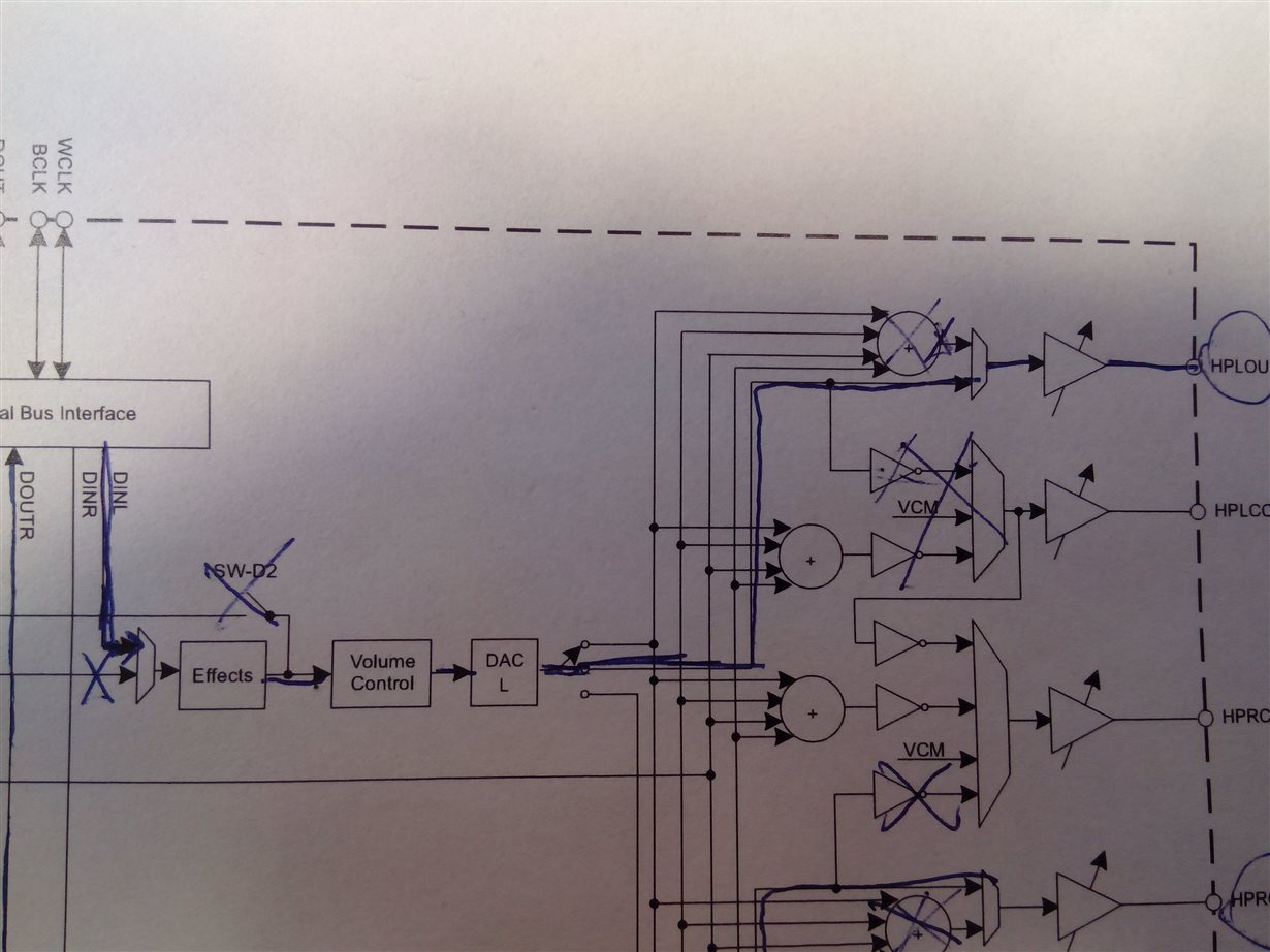 基本上从SAI进入音量控制> DAC >和海峡到HP OUT (绕过多路输出通道)