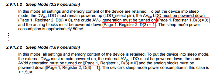 我的客户在其移动设备中设计TLV320AIC3254。 他们希望编解码器进入休眠模式。 目前,SW RD不知道如何操作进入睡眠模式并唤醒。 您是否有任何休眠操作命令 序列? 和唤醒命令序列?