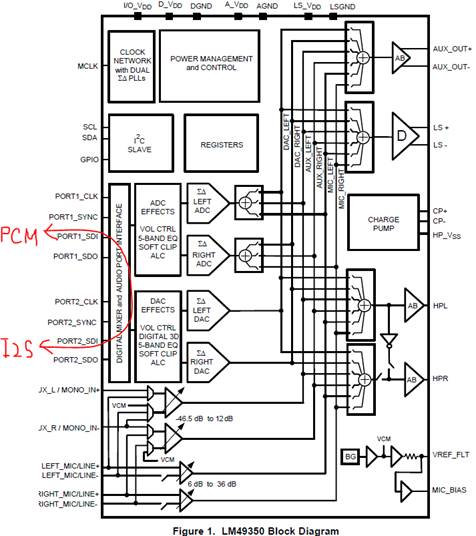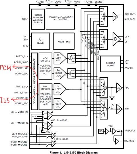 2- LM4.935万可用作PCM和I²S Ω 接口之间的桥接器,请参阅数据表中的“数字混频器”部分。