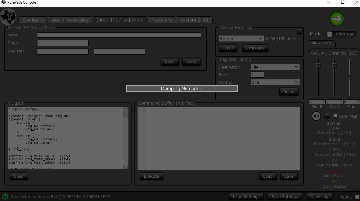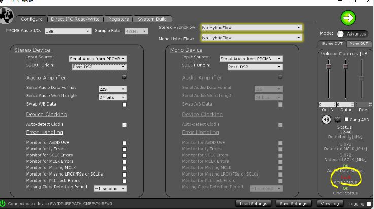 https://e2e.ti.com/support/audio-group/audio/f/audio-forum/631826/tas5754m-purepath-console-2-freezing-up-problem-and-audio-data-fault-with-tas5754