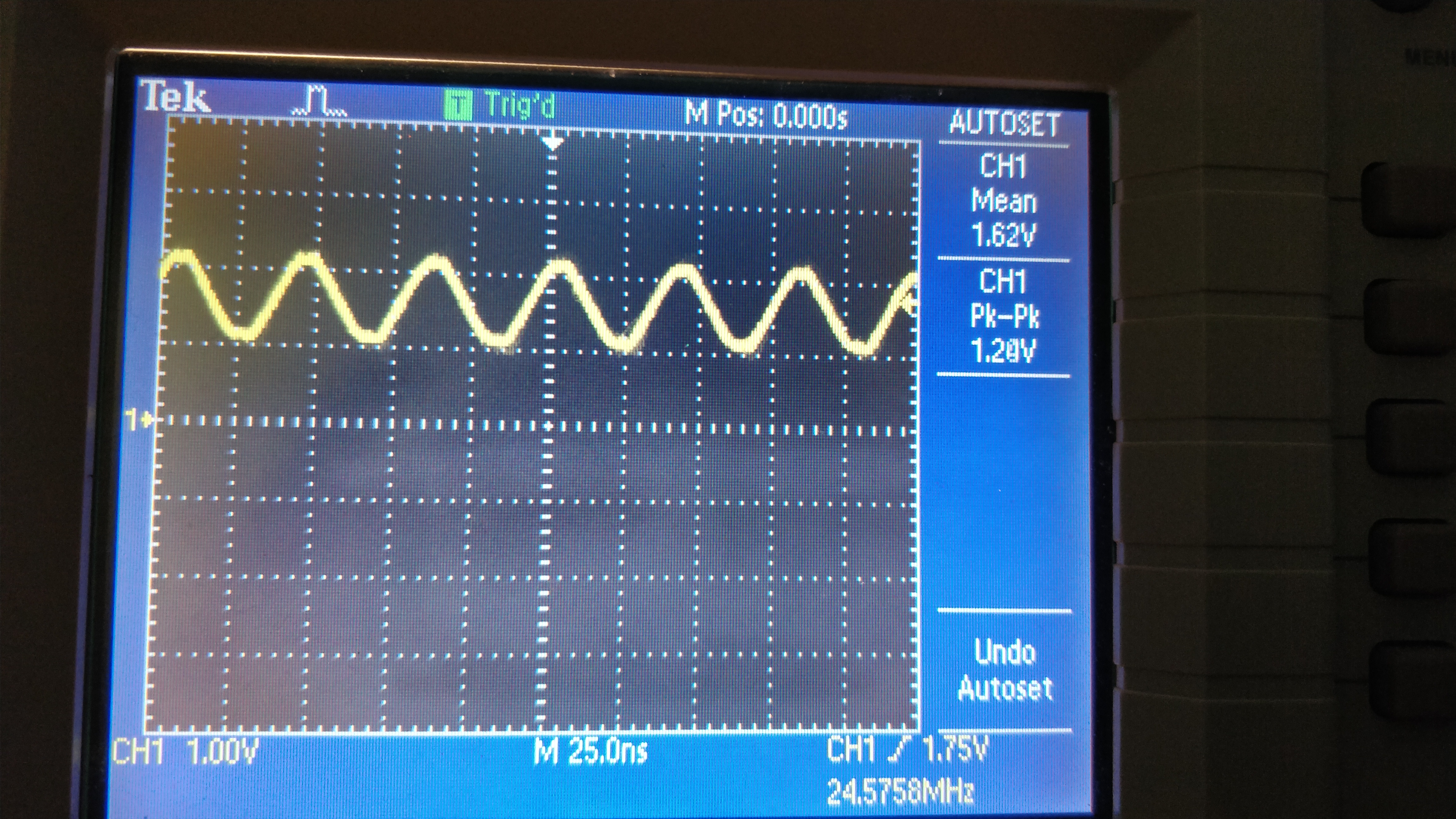 我正在使用这个24.576MHz的振荡 器https://www.digikey.com/product-detail/en/abracon-llc/ASTX-H11-24.576MHZ-T/535-1.2038万-1-ND/3906609</s>390.6609万