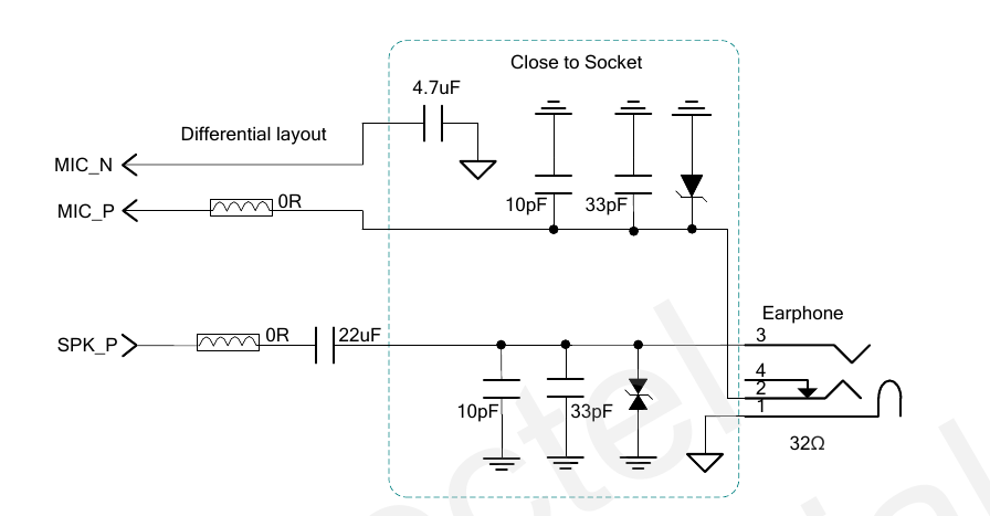 3.如果我想在差分信号中使用音频插孔(用于测试),Quectel建议使用以下电路。 SPK_P为RIGHT _LOP。 这是否可行? Rright_LOP不是高功率驱动器,我想知道以下电路是否可以工作。