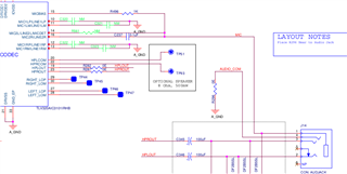根据我们的设计、我们在 HPLCOM 和 HPRCOM 之间连接了扬声器。 以及跨越 HPLOUT 和 HPROUT 的音频插孔(耳机)。 您能否建议此配置的寄存器设置。 连接原理图的部分以正确理解。