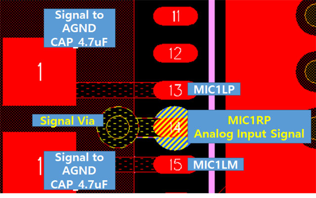 如果可能、也为 MIC1R 添加 CAP 选项、并将过孔移出。