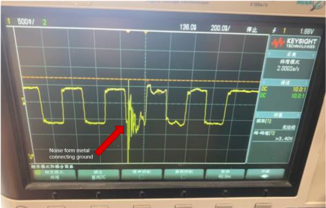 我有一个现象需要与您进行仔细检查。 根据我客户的反馈、他们在音频扬声器中使用 PCM9211 、输入为同轴输入、他们遵循数据表中的电路指南。  在测试同轴电缆性能时、他们发现同轴信号 很容易受到接地的影响。 它们使用 外部金属接地、它将在同轴信号波形中存在噪声。 这种现象存在几个项目。 这种现象是否正常?