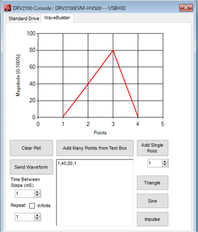 我使用压电控制台将波形设置为画面照像。 我希望该波形仅在点击"Send Waveform"时输出一次。 但波形 是输出4次。 是什么导致了这种情况的发生?