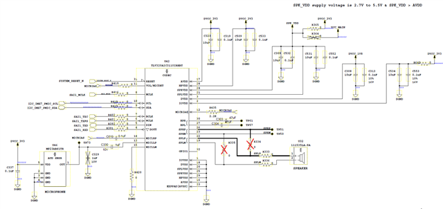 我们将以5.10 v 内核运行的 i.Mx7D 处理器用于我们的定制产品之一。 我们正在尝试将 TLV320AIC3110编解码器与 Freescale iMX7D 处理器连接。 我们使用了 tlv320aic31xx 作为驱动程序 文件。 但我们找不到所需的平台接口文件 IMX-tlv320aic31xx、因此我们使用了通用驱动程序"simple-card.c"文件。 我们在编解码器 MCLK 上获得24MHz、但无法听到来自的任何音频输出 扬声器、我们观察到下面附加了"aple"命令输出的任何错误。 我还在连接设备树更改。