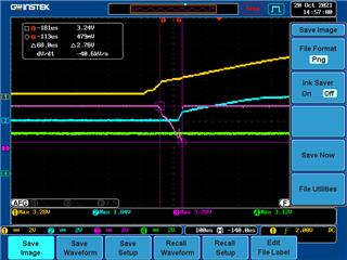 我同意您的观点、即在所有电源斜升之前、数字节点处于未定义状态。 对于复位信号、我们确保它在变为高电平之前在5ms 内保持低电平。 实际上、我们已经尝试将导线跳到导线、以确保我们坚持数据表中建议的加电顺序、但症状仍然存在。 一旦发生、它将导致主机连接、整个系统暂停。