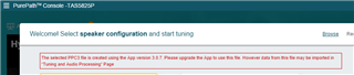 将框架更新到 v3.2.1后、客户现在可以登录并将 TAS5825P 应用更新到 v3.0.7。 完成此操作后、他们可能能够在 TAS5825P 应用程序中打开.pppc3文件。