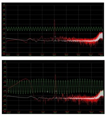 从1kHz 正弦输入启动电路板、高于300mV rms 输出、则采用50Hz 调制。 在下降水平时、此效应在大约200mV 时消失。 当电压降至200mV 时、50Hz 会突然出现、也会突然消失。 某种迟滞。 扩频对此没有影响。 请查找随附的一些测量。