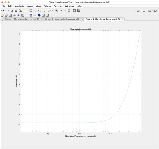 感谢您的更新。 我必须将您的问题推迟 到我们开发 PurePath Studio 的团队、以弄清为什么未正确生成滤波器系数。 有时、为了防止溢出、PurePathStudio 会降低系数、但这不应影响滤波器的响应、而只影响增益。