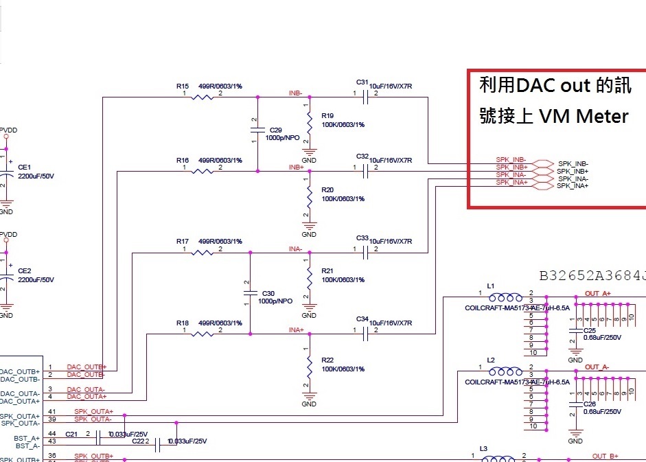 我‘d 确认 TAS3151的 DAC 输出是否可以连接 VM 表? 请参阅以下原理图、如果没有、如何连接 VM 表?