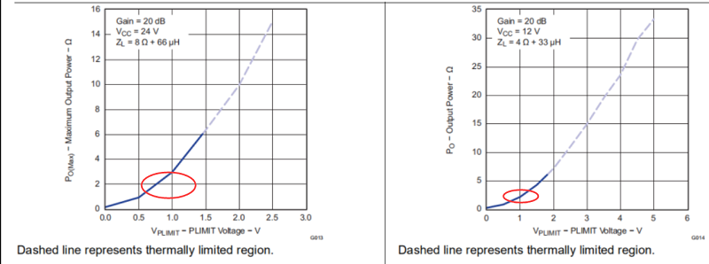 按照以下公式计算、当 PLIMIT=1.1V 时、单通道 Poutmax=1W、但图中显示当 PLIMIT=1V 时、它大约为3W。