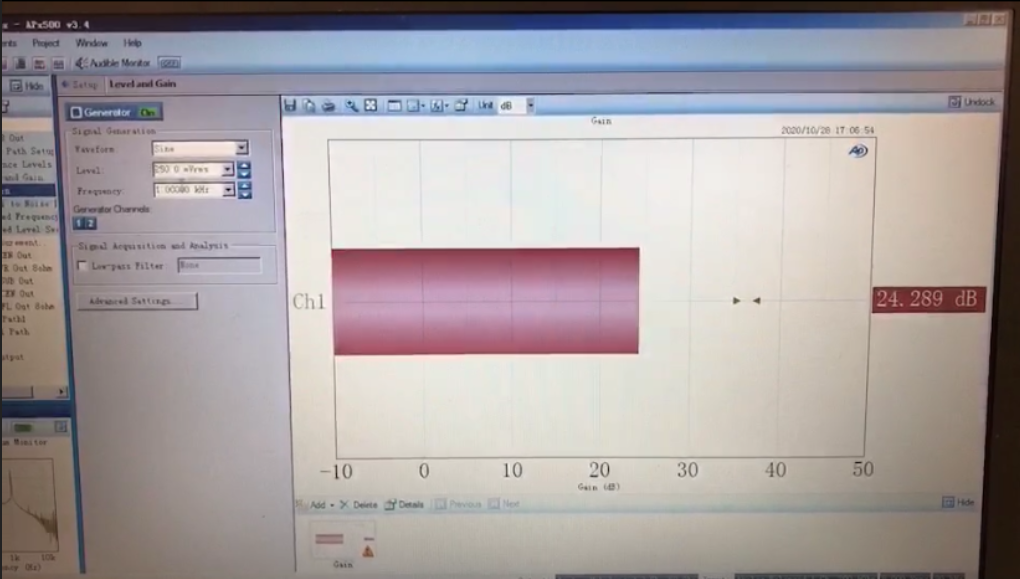 首先、小信号测试、增加输入信号、在功率削减后、增益降低。 然后减小输入信号、增益始终处于降低值、不能增大。增益从36更改为24、然后无法恢复到36。 下图是测试结果。