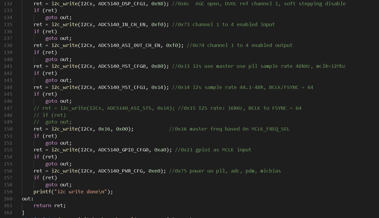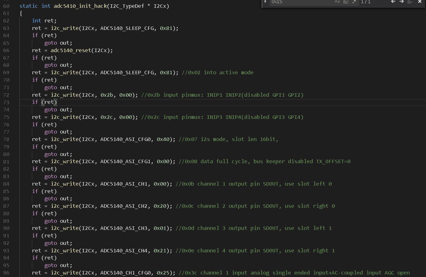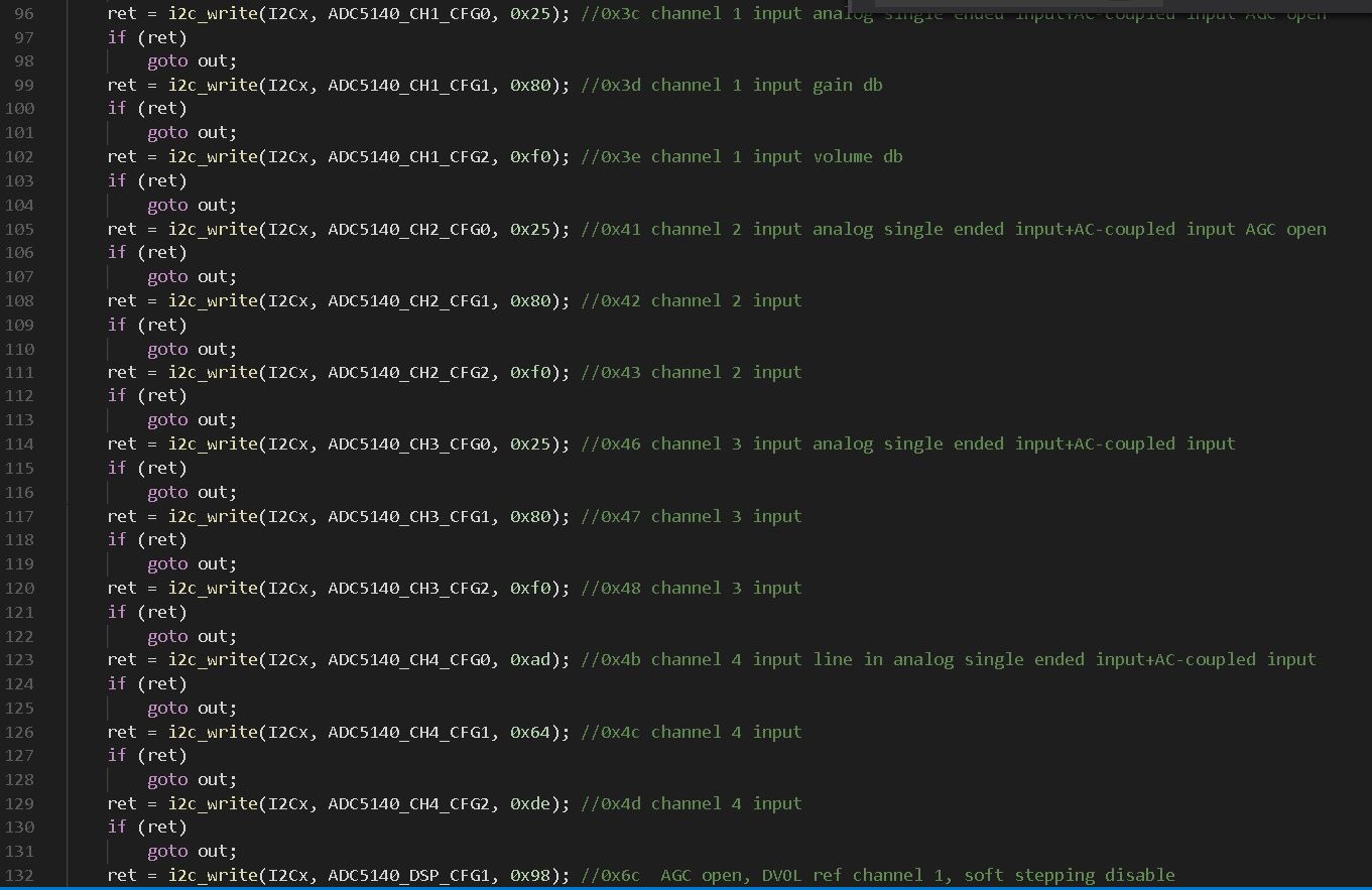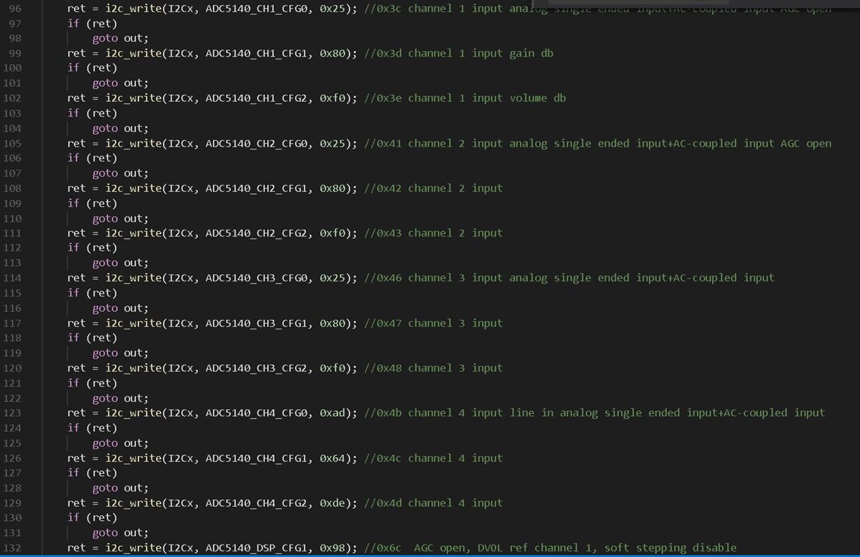 器件型号:TLV320ADC6140 我有3个通道线性模拟输入和1个模拟线性输入