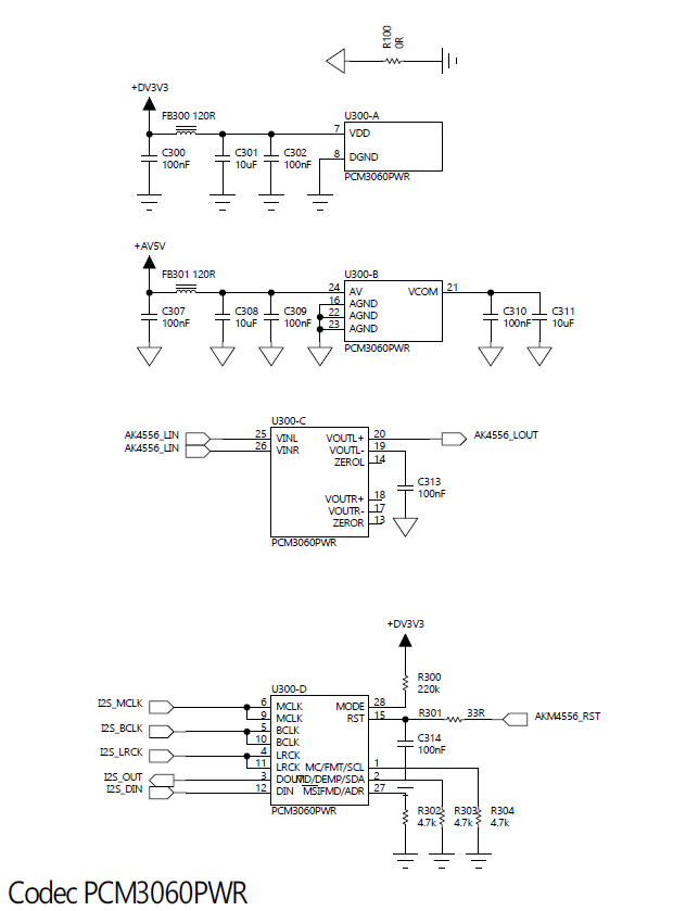 PCM3060硬件模式下无声音,以下是原理图、请帮助检查、谢谢!
