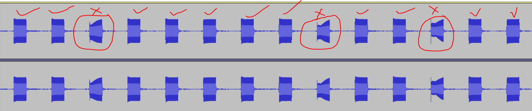 到现在为止、为回放指定的 PFA 输入数据。 在 少数音频回放中、该问题仅会导致振幅下降。 我现在没有 CRO,所以只分享了在电话中录制的输出,并在 Audacity 工具中进行了分析。