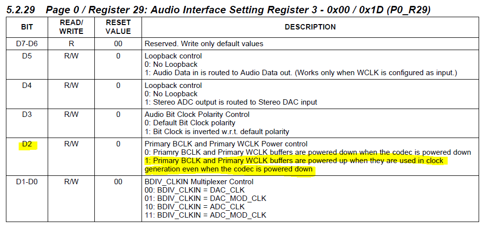 2.P0_ R29_ D2=0、在时钟中使用 BCLK/WCLK