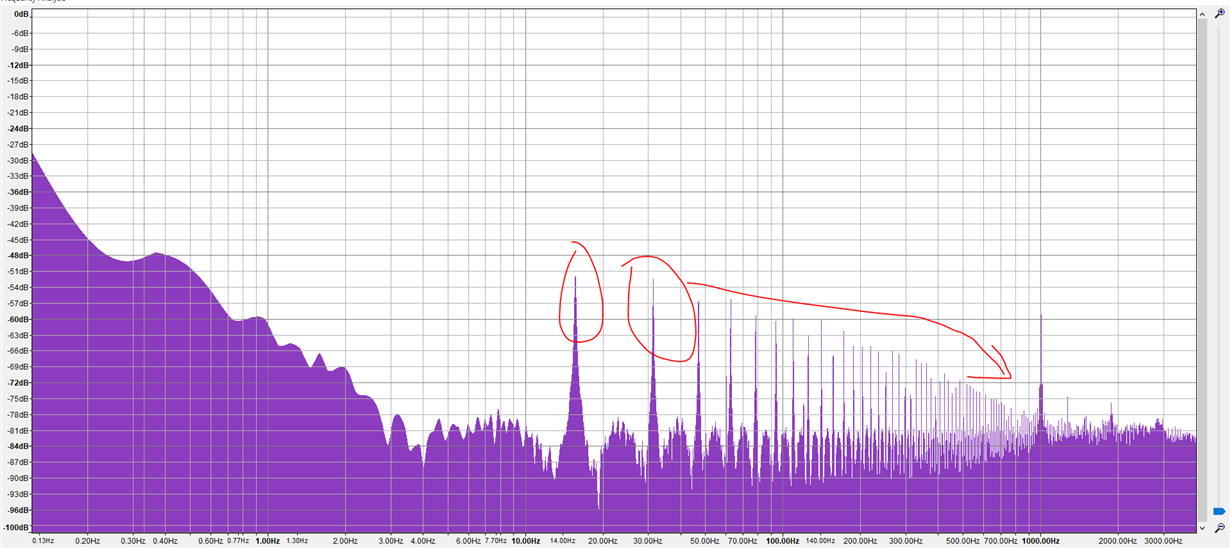 另外、当您向我展示15Hz 频率及其谐波时、您使用了什么工具来查看我的文件? 因为有了 Audacity、我在使用进行分析时无法看到这一点 选项 如果是 Audacity、您使用了什么选项?