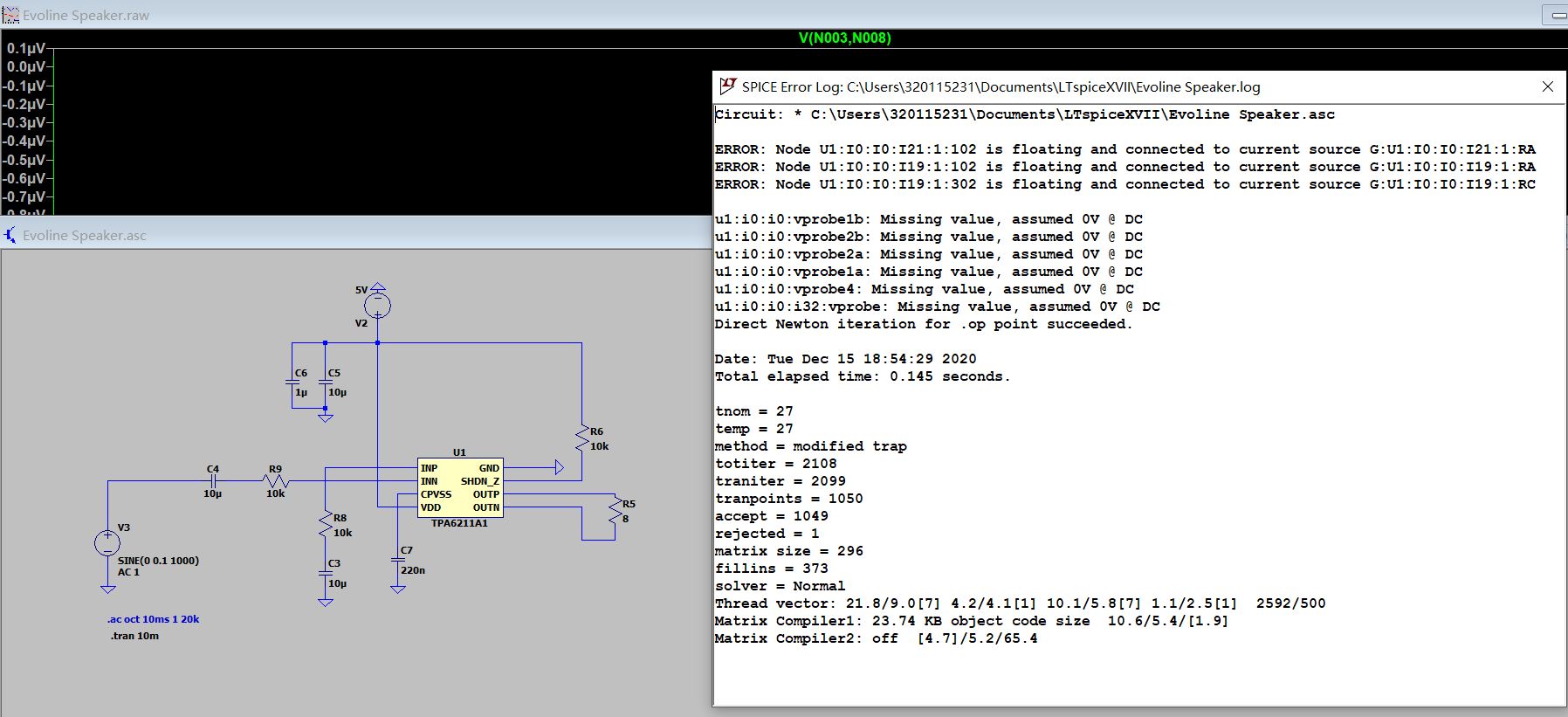 使用 TPA6211A1的 PSpice 模型进行仿真时出错。