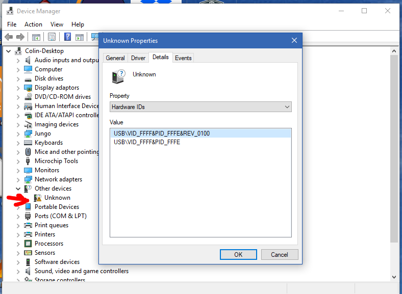 我有一个 PurePath-CMBEVM (问题 G)+ TAS5766MRMTEVM 组合、几天前就开始工作了。 遗憾的是、当我现在插入 USB 时、它将作为未知设备出现、因此 Console 3软件无法连接到它。