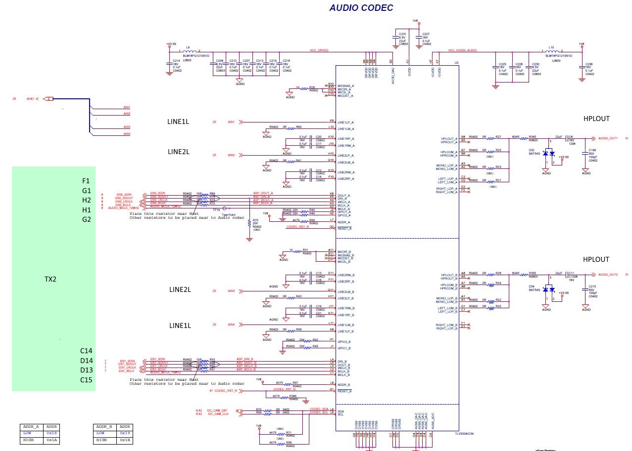 我正在使用 Linux 内核4.9.140、并配置了设备树、以安装一个 ALSA 卡、其中包含两个单独的编解码器(A 和 B)、每个编解码器使用不同的 I2S 线路。 为系统配置的编解码器驱动程序是 tlv320aic3x。