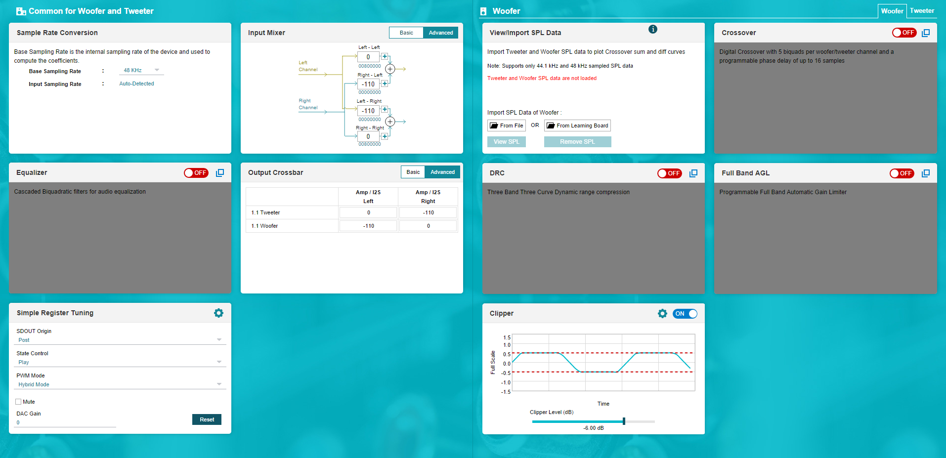 在本文档中、Clipper 的寄存器位于0x8c 页0x07寄存器0x64、0x6C、0x70中。 但是 、本文档未提供 Base / Pro Hybrid 音频模式、PPC3无法 单独配置削波器。