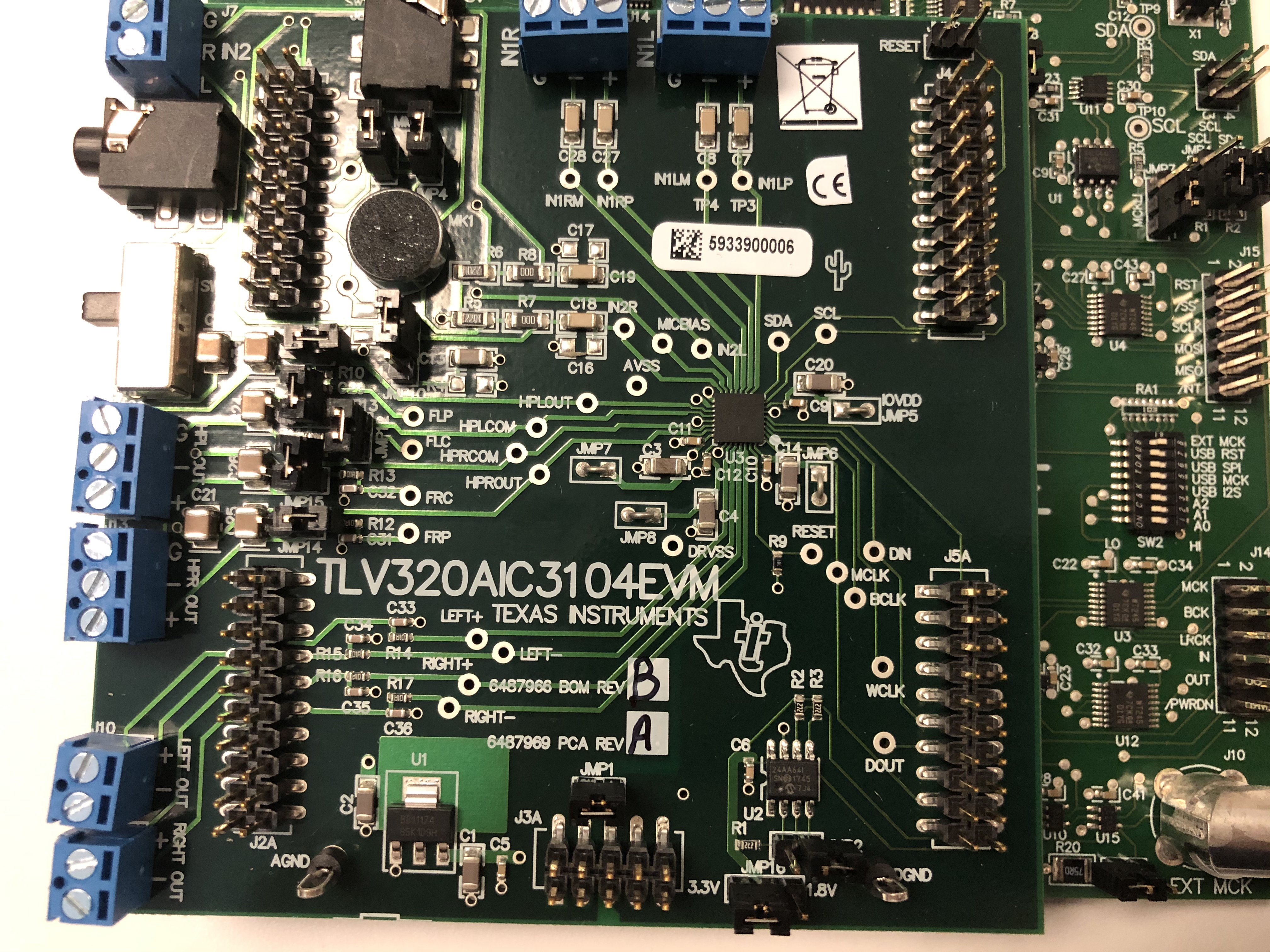 AIC3104EVM 电路板的图片如下图所示。