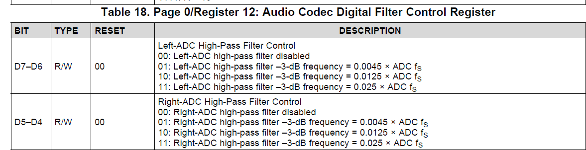 当客户测试14引脚和16引脚时、发现输入具有1.8V 直流偏置电压。 为了检查直流偏置的来源、客户断开了 C4071和 C4072 (输入电容器)、然后测试了14引脚和16引脚、仍然存在1.8V 直流偏置。 客户将14引脚和16引脚设置为信号端输入。 这种现象 是否正常? 为什么输入具有直流偏置? 如果我想移除该直流偏置、应该怎么做? 是否可以设置页0寄存器 D712的 D6=01 &D5D4=01?